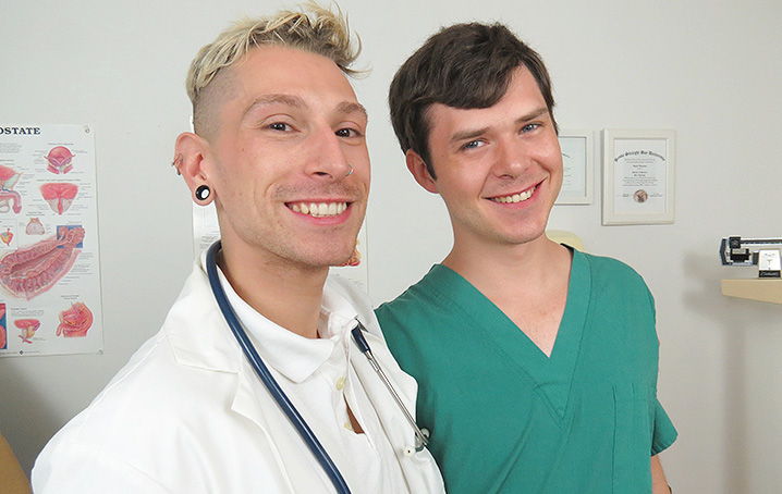 The nurse, Dakota, impressed the doc so much that the nurse then prepared his cock to insert inside the doctor’s tight rectum. With an ample amount of lube, nurse Dakota slowly inserts his cock into the doc’s tight rectum. The doc moans at first, but once the nurse pumps his cock in and out of the rectum, the doc loosens up and enjoys the ass pounding. The nurse is really getting into it as the doc’s rectum istight, causing the nurse to feel the pleasure, then the nurse decides to flip the doctor over and continues to fuck the doc hard and steady. With such a tight rectum, nurse Dakota, with all his bent up energy, pulls out and cums on the doc’s ballsac, releasing hot jets of cum. Dakota reinserts his cock back into the doctor’s tight hole and continues to fuck the doc, as the doc strokes his cock and releases jets of hot,fresh cum spurting out of his cock finishing the day with a delightful lunch break.
