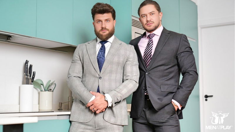 Even though it's currently a seller's market, Real Estate agent Dato Foland has just closed on a hot new property for his client and buyer, Heath Halo. As is customary, they are doing a final walk-through, where Heath expresses his gratitude for Dato's service. The homeowner is ready to enjoy his new pad right away and invites his sexy agent to a private housewarming party right now. Dato is confident he understands, but still asks Heath what he has in mind. Heath slowly approaches Dato, grabs his crotch, and tells him.. "I reckon I can start here." Passionate kissing leads to mutual cock sucking, and Dato eating Heath's hairy hole until he pulls his legs over his shoulders and fucks his client raw. The fantastic feeling of having Dato's big, uncut cock inside him is too much to resist, and Heath cums all over his floor while getting fucked, and afterwards, Dato pulls out and cums all over Heath's bearded face. Closing Deals, Opening Doors (and Holes).