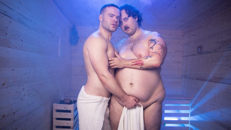 Marcus McNeill is getting steamy in the sauna when Thick Angel enters and shows off his big ass to the handsome top. Marcus just has to play with and jiggle those cheeks, then stick his face between them. The bottom eagerly sucks Marcus's dick and his toes, and Marcus plays with Thick Angel's nipples and even fucks his tits before sliding his cock in that hole. Marcus drills the bottom in piledriver, then fucks him on his back till he shoots a thick load, and the top cums on his face.