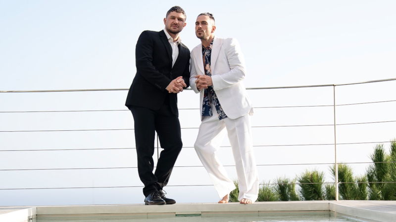 Hacktivist Paddy O'Brian's plans to take down the Broligarchy, and its strongest avatar Jay Roberts, have gone off without a hitch, with the assistance of detective Dato Foland. All that's left is the celebrating. Dato starts to caress the handsome hacker by the pool, and the guys move inside where Dato sucks the top. They frot, and Paddy teases Dato's hole with his tie, then tongues it before sliding his cock inside. The bottom rides him, and Paddy fucks Dato on his back, then in spoon position until the bottom orgasms. Paddy celebrates his victory by cumming on Dato's face before gazing out at the new world they've created.