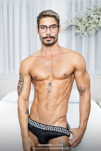Deltoids, Biceps, Forearm, Ribs, Stomach right upper arm: lion head with glasses and knit hat left biceps: comedy/tragedy theater masks