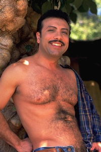 Vinnie and Bill have made their way back to their Brownstone apt. The contest is over and a winner has been chosen. They agree that everything went really well. Vinnie reminds Bill of his promise to take care of him, at home. "We're home now," Vinnie's says with a sheepish (bearish?) grin. Vinnie takes care of Bill's cock, while shoving a finger up his ass until he blows a load all over his bear belly. Vinnie then wags his tail in Bill's face, for a good butt eating, that leaves him shooting a sizable load of his own.