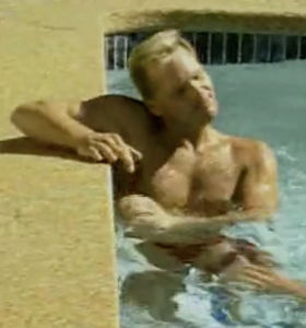 The next scene takes us back to the pool at Logan's frat house, where bros Josh Sexton and Randy Ross are cavorting in the pool. The horseplay turns serious when furry blond Randy pulls down cutie pie Josh's trunks and sucks his dick poolside. Josh leans back and gives Randy complete access to his hole, which Randy licks until it's slick with saliva. Then Randy climbs out of the pool and feeds his meat to Josh, who swallows it whole. The two look really appealing when they fuck, the sun gleaming on their sweaty, tanned bodies, and Josh easily taking everything Randy dishes out (which is considerable -- the guy fucks like a machine). Randy pulls out of Josh and sprays his load all over his back to end the scene.