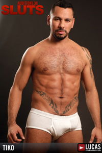 Upping the ante, Butch sends trusted aide Tiko to take care of Vinnie's long-lost brother. When rippling hunk Korben comes home, he finds beefcake supreme Tiko pointing a gun at his dog. "Strip or dog," hairy-chested Tiko says, and Korben strips down to nothing but a nipple piercing, some body ink, a necklace and a whole lot of muscles. He bends over and shows off a clean-shaven hole to Tiko, taking care to do the fingering himself as Tiko starts beating off. Tiko orders Korben over to him and starts sucking. Tiko is very passionate, playing his role to the hilt, which has Korben doing the same. As has become the pattern in this movie, the first dick to be blown in the scene is gigantic. Korben's white pecker is humongous, but with a stretching mouth and a lot of saliva, Tiko works it terrifically. He spends a good amount of time on Korben's balls too. Korben is then "forced" to blow Tiko, though his spicy deep-throat seems powered more by lust than by fear. Shots from feet away show Korben poking out his ass as invitation. However, Korben then rims Tiko's hirsute hole in combo with more sucking, putting Tiko in a defensive position, but they are too into each other. Tiko does a little ass munching too and then soars off to fuck Korben. Tiko is brimming with cockiness, sometimes forcing Korben to work backwards on him and sometimes stuffing Korben with dizzying speed and depth. He doesn't even need his hands to guide this galloping effort. Tiko shines in every position, but the one that finds Korben upside down is especially exciting. Korben is fingered into cumming after Tiko has unloaded on his torso.
