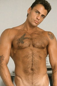 Two weeks later, Mike Nichols returns with Tarango's "New Customer Package" from Catalina, only to realize that he has mixed up Tony's delivery with that of neighbor Jake Taylor. In his living room, nosy Jake opens the package, sees the contents and pulls out his excited dick. It grows to a mesmerizing size -- so big in fact that he is able to double-hand it. Tony and Mike have been standing at the door to exchange the package but now barge in and almost fight for bragging rights of Jake's bat. Mike lavishes attention on Jake's balls while Tony devours the rest of the delicious penis. Jake must have been really horny -- he reaches a quick orgasm on his hairy chest. Proving he can take as well as receive, though, Jake lets Tony and Mike surround him and offer their cocks from both sides. Jake fellates Tony and then turns gentlemanly to Mike. Tarango erupts from the action, but isn't done yet. He moves to the foreground and slowly sinks onto Jake's rigid-again pole. This is a scintillating scene, with Tony a boisterous bottom and Jake proving to be a rabid cocksucker. Tarango does most of the action while penetrated, leaving Jake free to suck harder. Mike also gets to plow Tony's hot ass and after he and Jake have tag-teamed him, they drop cream on Tarango's buttcheeks and face, respectively.