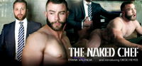 When cocky executive Frank Valencia comes home on his lunch break he's greeted by beefcake lover Diego, who ever the cock tease has cooked his suited daddy a meal while wearing nothing but an apron. As Diego plays the innocent his muscular body effortlessly taunts horny Frank who reaches for Diego's thick hanging semi under that apron. As Diego cooks at the hob Frank goes down and starts on lunch early eating out Diego's chunky butt before stuffing it with his hard horny cock.